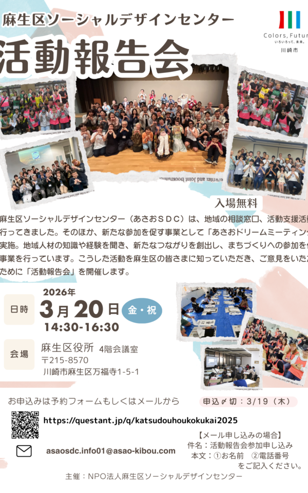 麻生区ソーシャルデザインセンター活動報告会 20260320(金・祝) 14:30~16:30