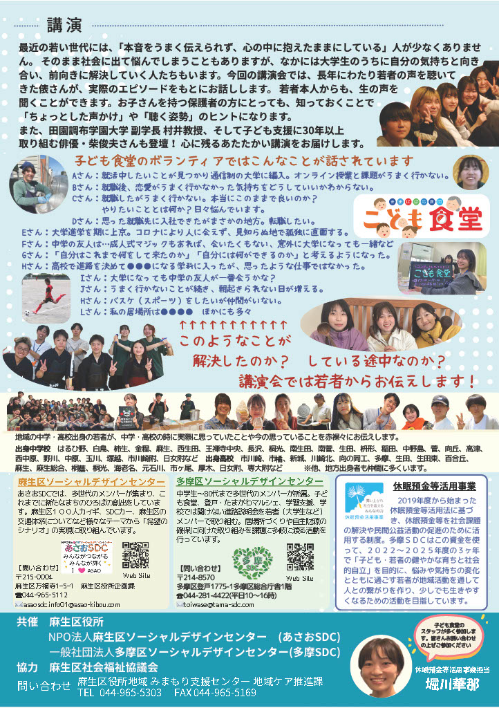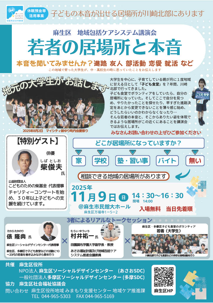 麻生区地域包括ケアシステム講演会 若者の居場所と本音を聞いてみませんか 20251109 14:30-16:30
