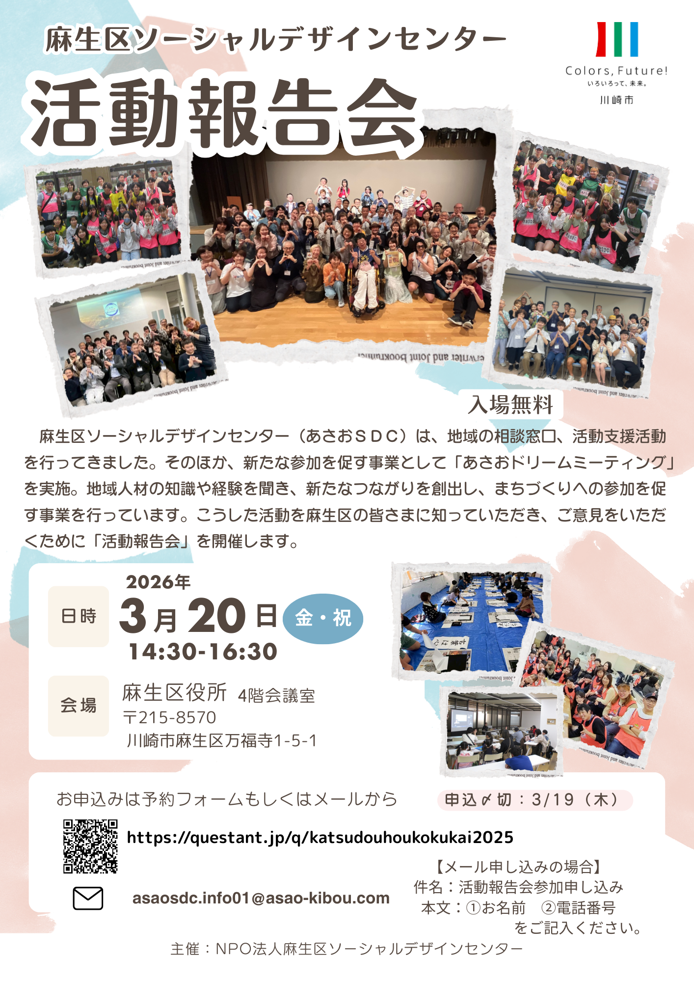 麻生区ソーシャルデザインセンター活動報告会 20260320(金・祝) 14:30~16:30